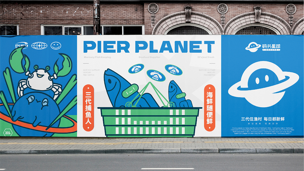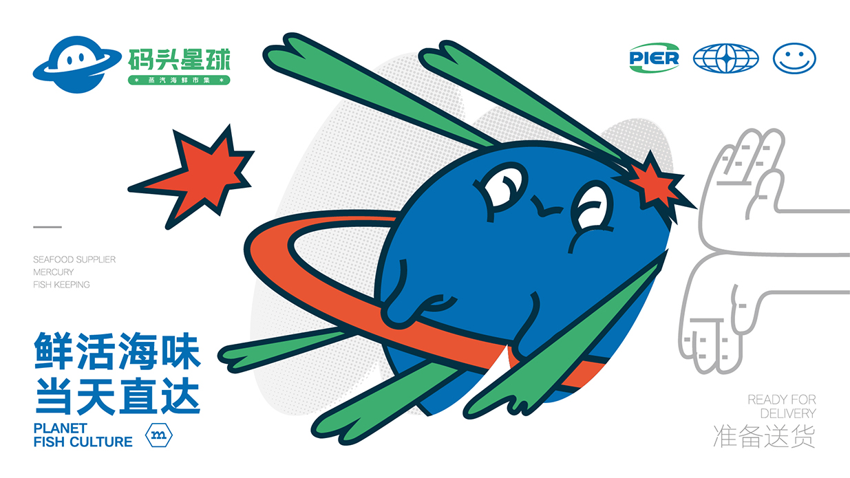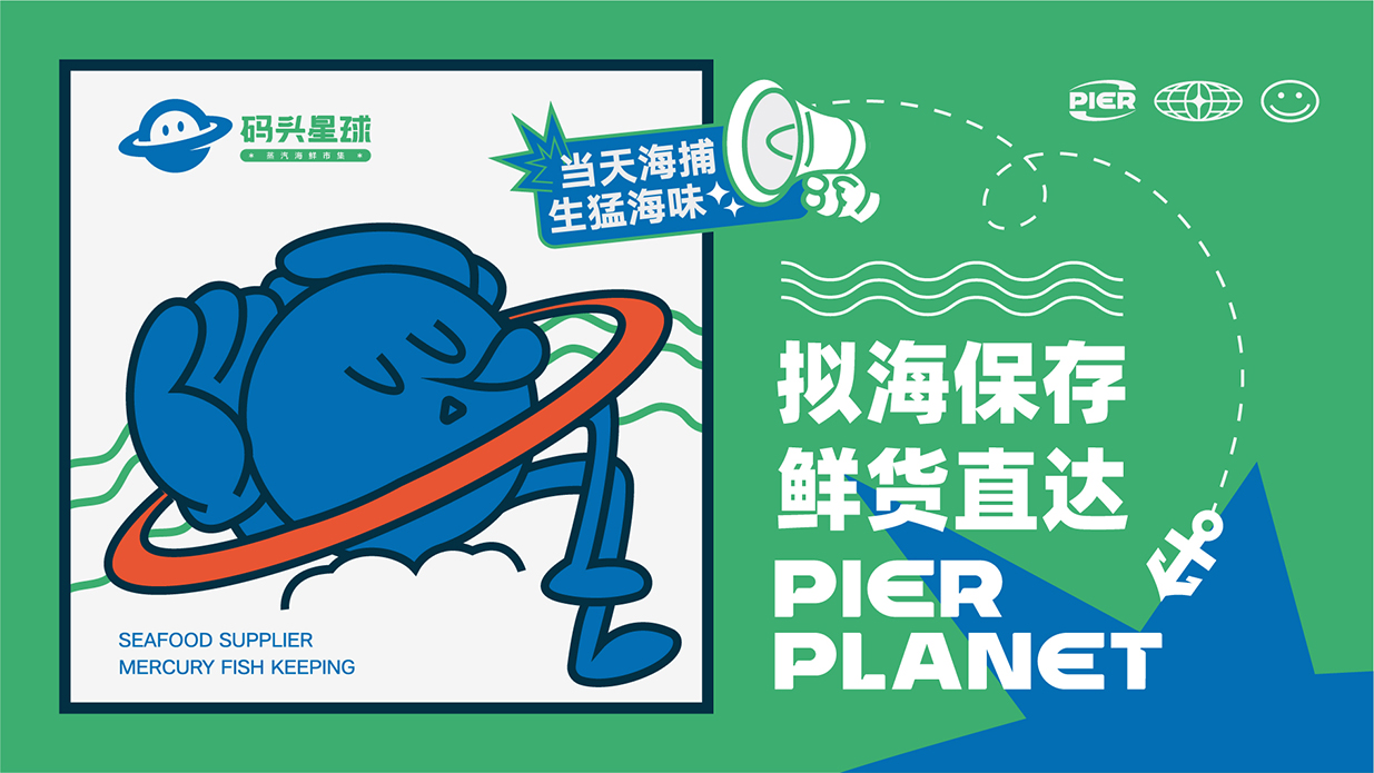 方案以星球?yàn)槌霭l(fā)點(diǎn),致力塑造一個(gè)生動(dòng)有趣的品牌形象以擬人化的海鮮星球?yàn)橹饕睾汪~(yú)和籃子等元素表明行業(yè)與市集屬性,并通過(guò)變化標(biāo)簽給品牌帶來(lái)充分的聯(lián)想感。