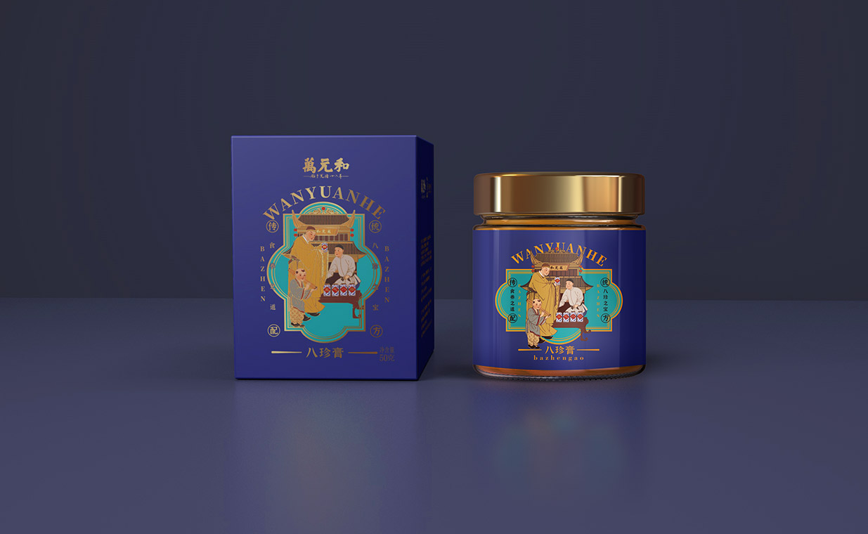 Introduction:萬元和八珍膏,百年傳承,歷史悠久。自清光緒年間創(chuàng)立以來,一直致力于傳承和發(fā)揚(yáng)中華傳統(tǒng)食養(yǎng)文化。通過包裝設(shè)計展現(xiàn)了品牌的歷史底蘊(yùn)和文化內(nèi)涵。