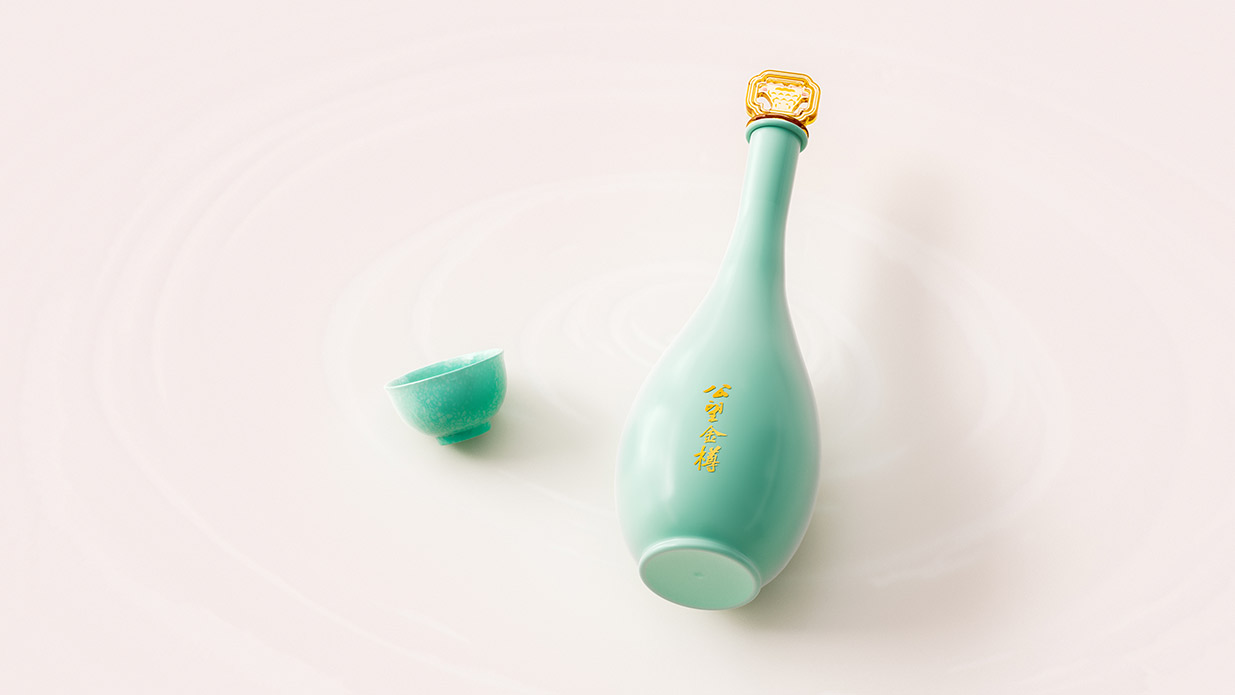 在瓶身設(shè)計(jì)上,我們采用了龍泉青瓷工藝,其造型借鑒了經(jīng)典的觀音瓶。觀音瓶線條流暢、比例協(xié)調(diào),自古以來(lái)就被視為高貴典雅的象征。龍泉青瓷以其溫潤(rùn)如玉的質(zhì)感和清新的色澤聞名于世,與公望白酒的高品質(zhì)形象相得益彰。這種設(shè)計(jì)不僅體現(xiàn)了產(chǎn)品的高端定位,更將江南地區(qū)的地域文化融入其中,讓消費(fèi)者在品鑒美酒的同時(shí),也能感受到深厚的文化底蘊(yùn)。