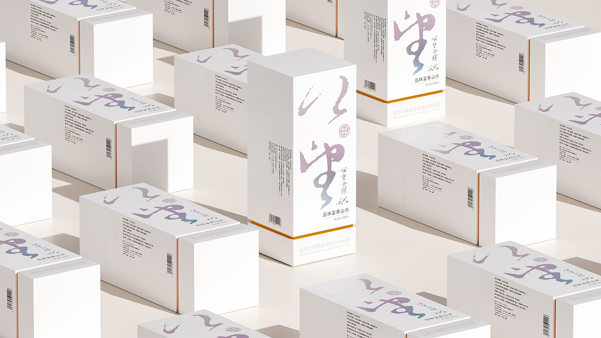 Introduction:公望白酒以其獨(dú)特的葡萄釀造工藝脫穎而出,其口感醇正且?guī)в衅咸烟赜械墓悖@種與眾不同的特質(zhì)為包裝設(shè)計(jì)提供了豐富的靈感來(lái)源。公望白酒的釀造基地位于風(fēng)景秀麗的富春江畔,這里是元代著名畫家黃公望的故里,深厚的文化底蘊(yùn)為產(chǎn)品注入了獨(dú)特的靈魂。因此,包裝設(shè)計(jì)的核心理念是借勢(shì)地域文化,將傳統(tǒng)文化與現(xiàn)代審美相結(jié)合,打造出具有獨(dú)特人文氣質(zhì)的產(chǎn)品形象。