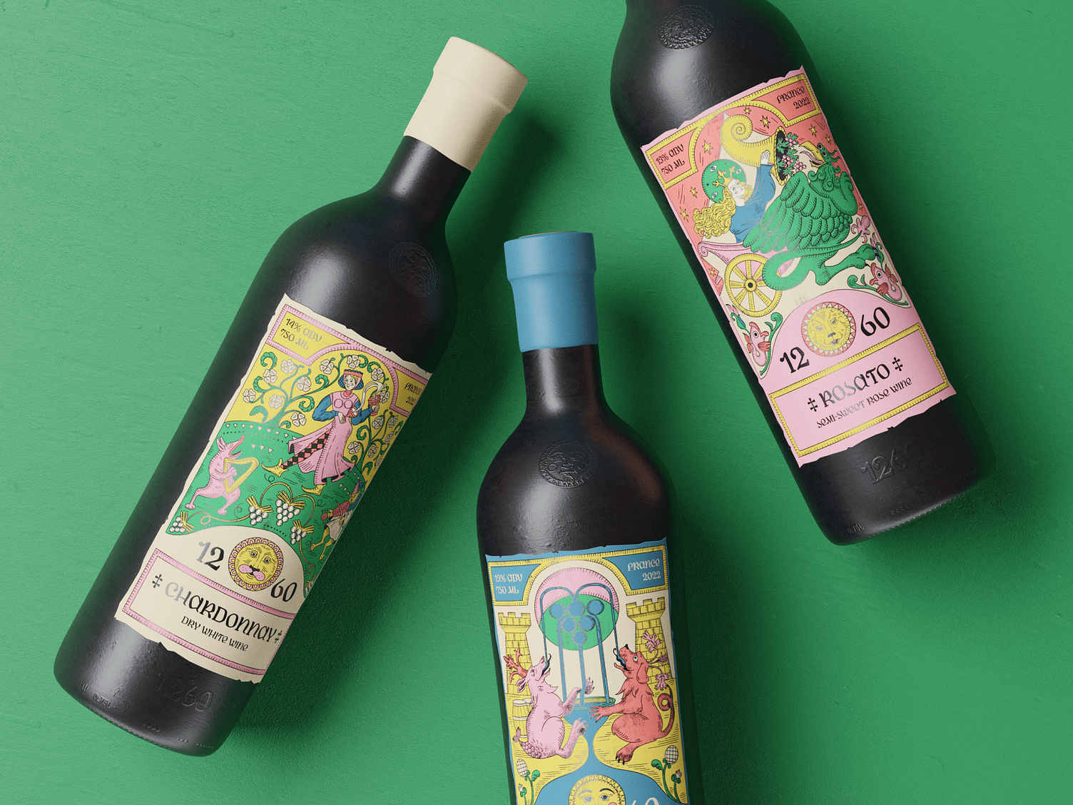 這組葡萄酒包裝設(shè)計,采用中世紀(jì)復(fù)古設(shè)計風(fēng)格,精美的插畫極大地提升產(chǎn)品的吸引力和藝術(shù)感。