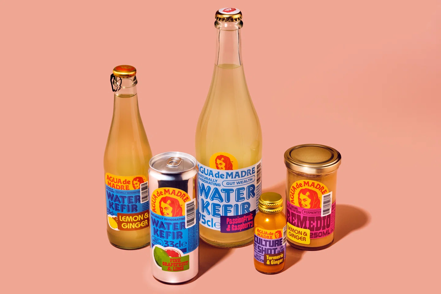Agua de Madre是一種天然低糖、有益于腸道健康的飲品,含有數(shù)十億種活性益生菌。品牌重塑后,將飲料的營養(yǎng)和活力通過顏色、類型、貼紙和風(fēng)格的友好與狂熱相結(jié)合,呈現(xiàn)出獨(dú)特的品牌形象。