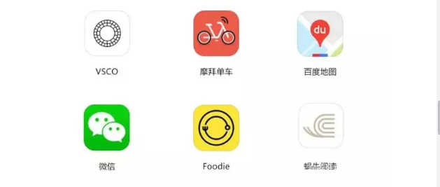 比如:VSCO,摩拜單車(chē),百度地圖,微信,F(xiàn)oodie,蝸牛閱讀,等等。
