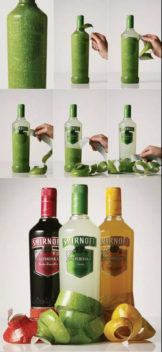 在酒瓶外包裹一層薄膜果皮